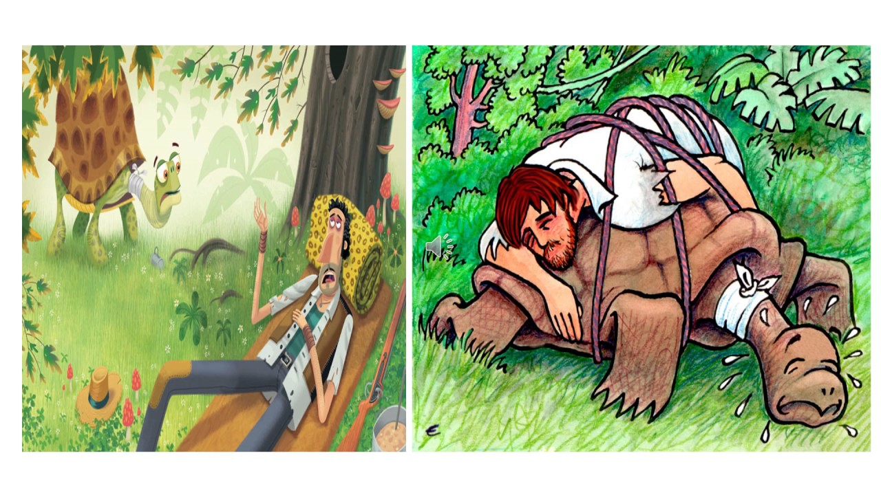 Es una historia sobre la amistad que surgió entre una tortuga y un cazador y la ayuda que se dieron el uno al otro.